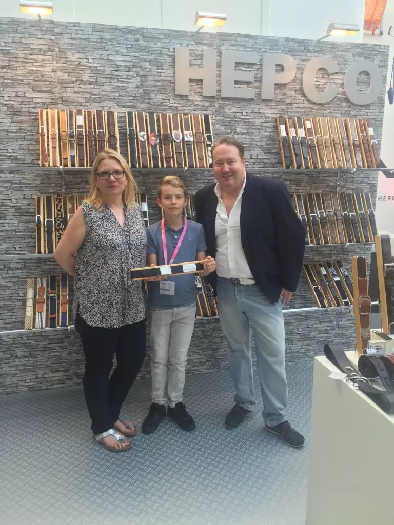 Firma Hepco, die Firmenspitze so geballt schön, dass wir uns getroffen haben! Denn Frau Susanne Sträb - wir kannten uns nur vom Telefon - freute Manuel und mich sehr. Meinen Namensvetter Peter Hummel, wir kennen uns ja schon viele Jahre, musste ich vom Herzen drücken, denn ihn so gesund wieder zu sehen war für mich mit das Schönste in Offenbach. Neuheiten gab es auch , der selbsanpassende Gürtel im Handumdrehen, wie von Manuel gezeigt, mit Koppelschließe. Oder etwas zum Selbstaussuchen demnächst auf unserer Hepco Seite! Danke für eine sehr emotionale Begegnung. Manuel sagte später, als wir zuhause waren: "Papa, du hattest Tränen in den Augen". Danke Euch.