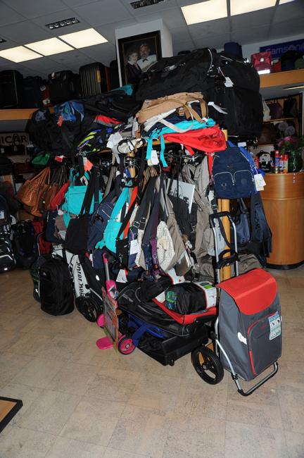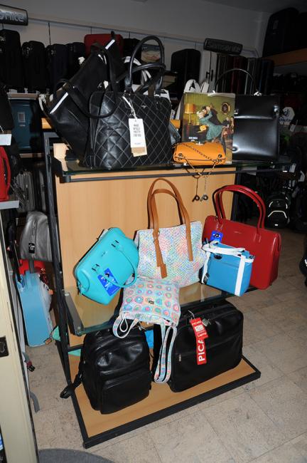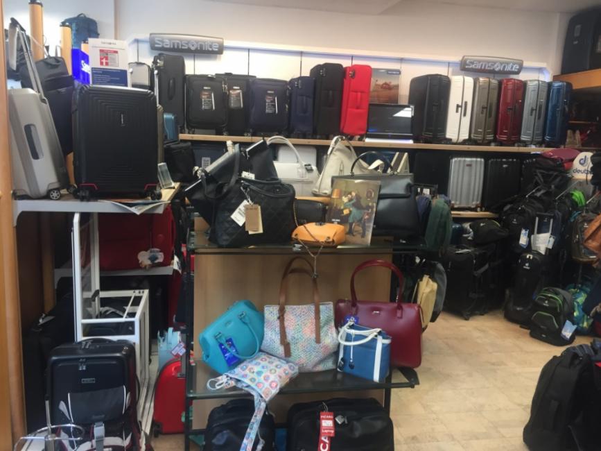 Der Warenmittelständer wurde raumgerecht angepasst mit Picard und Kippling Nylon Taschen. Oben Sportreisetaschen Travelite und Boardtrolleys im günstigen Preisniveau darunter, werden Andersen Einkaufswagen und Kippling Reisegepäck gezeigt.