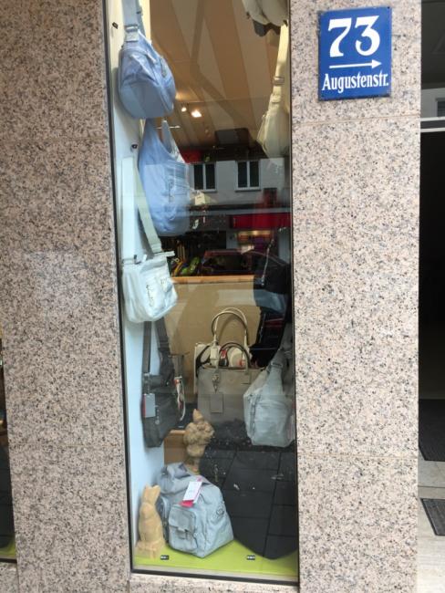 Der vorhandene Picard Ständer für Neuheiten als Blickfang wurde im Empfangsfeld platziert. Die Picard Ecke in der Handtaschen Wand bietet so mit dem Fenster immer ein abwechslungsreiches Taschen Schauspiel.